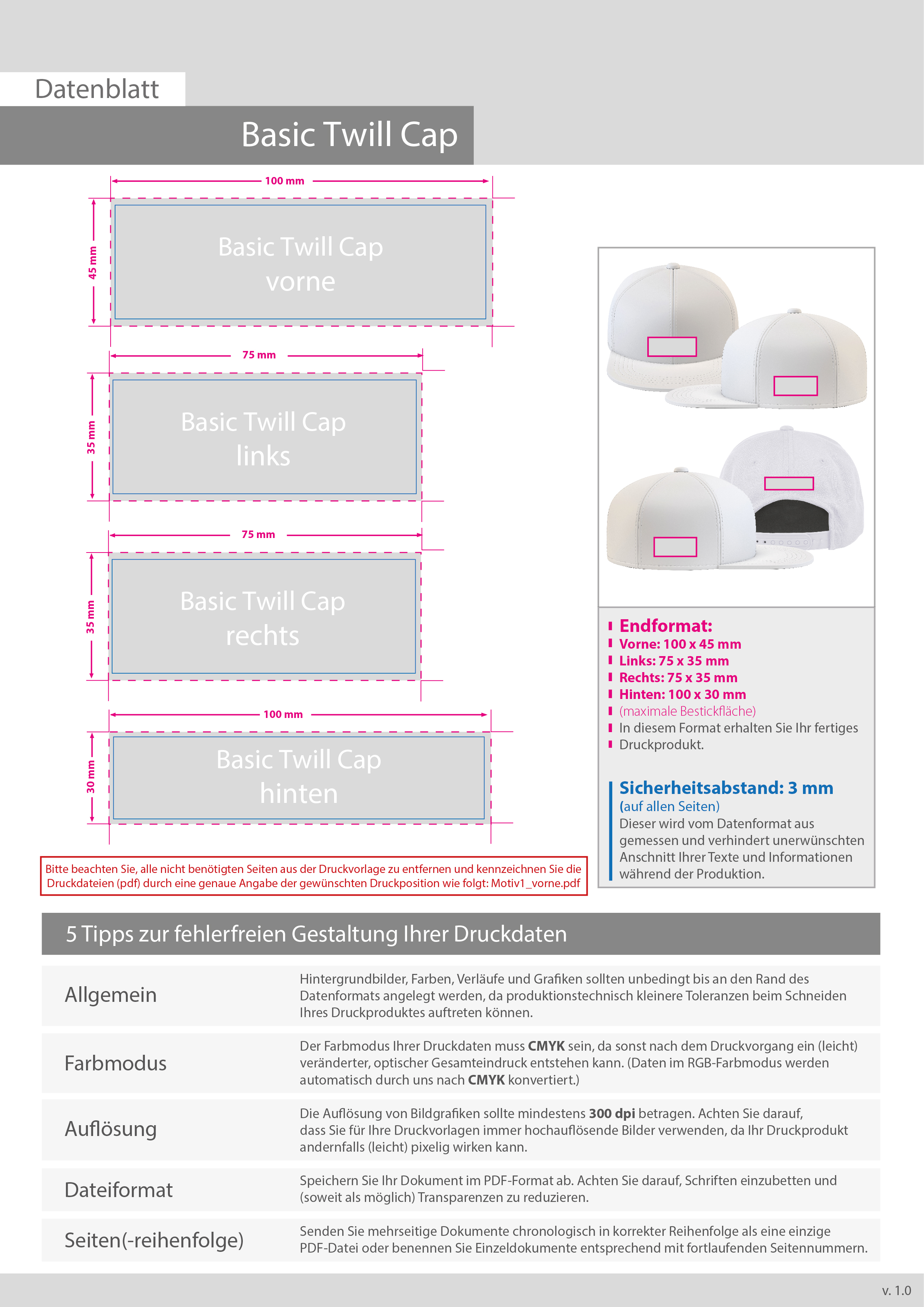 Basic Twill Baseballcap, mit VIER Stickpositionen