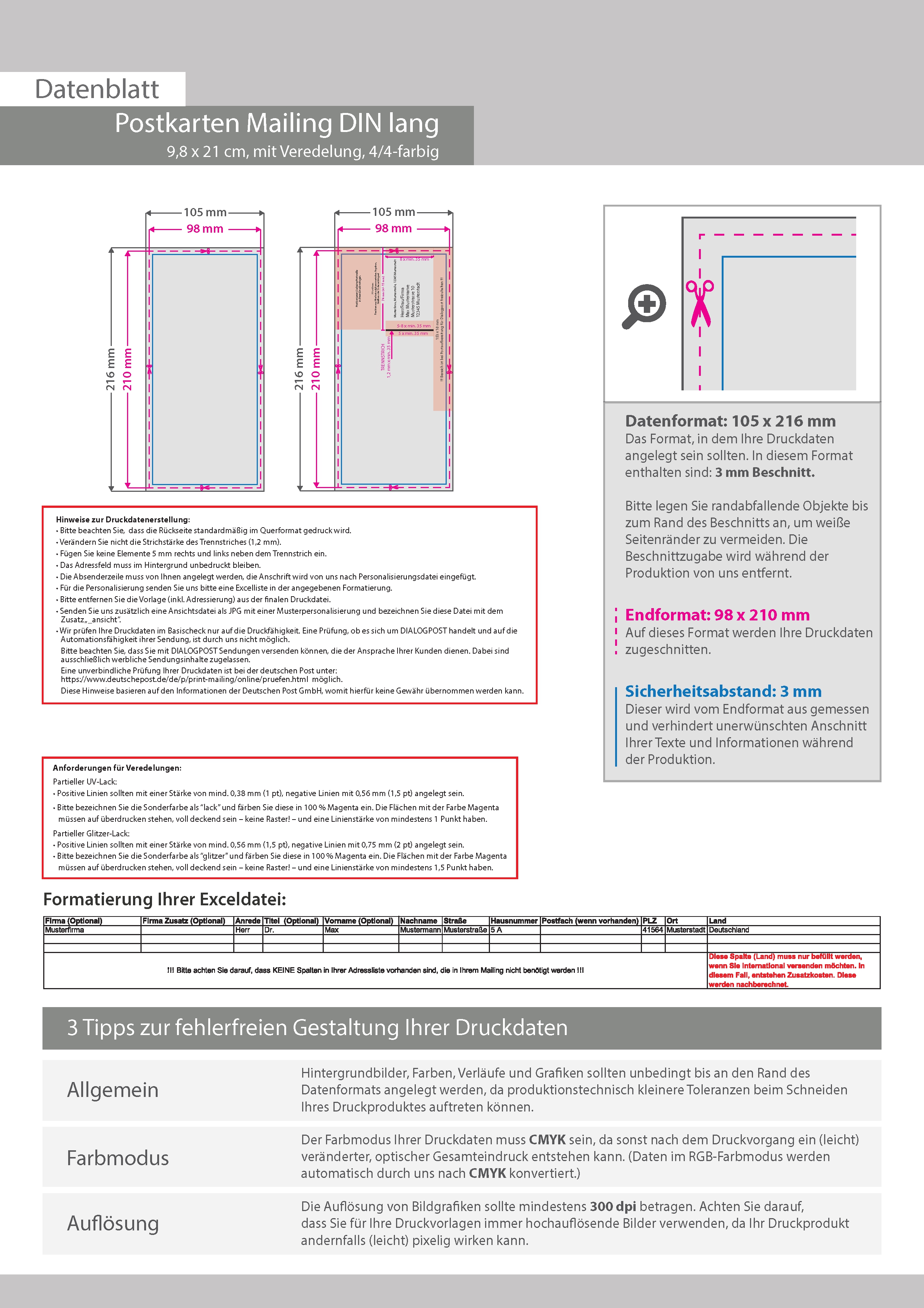 Postkarten-Mailing DIN lang (9,8 cm x 21,0 cm) mit partieller UV-Lack-Veredelung