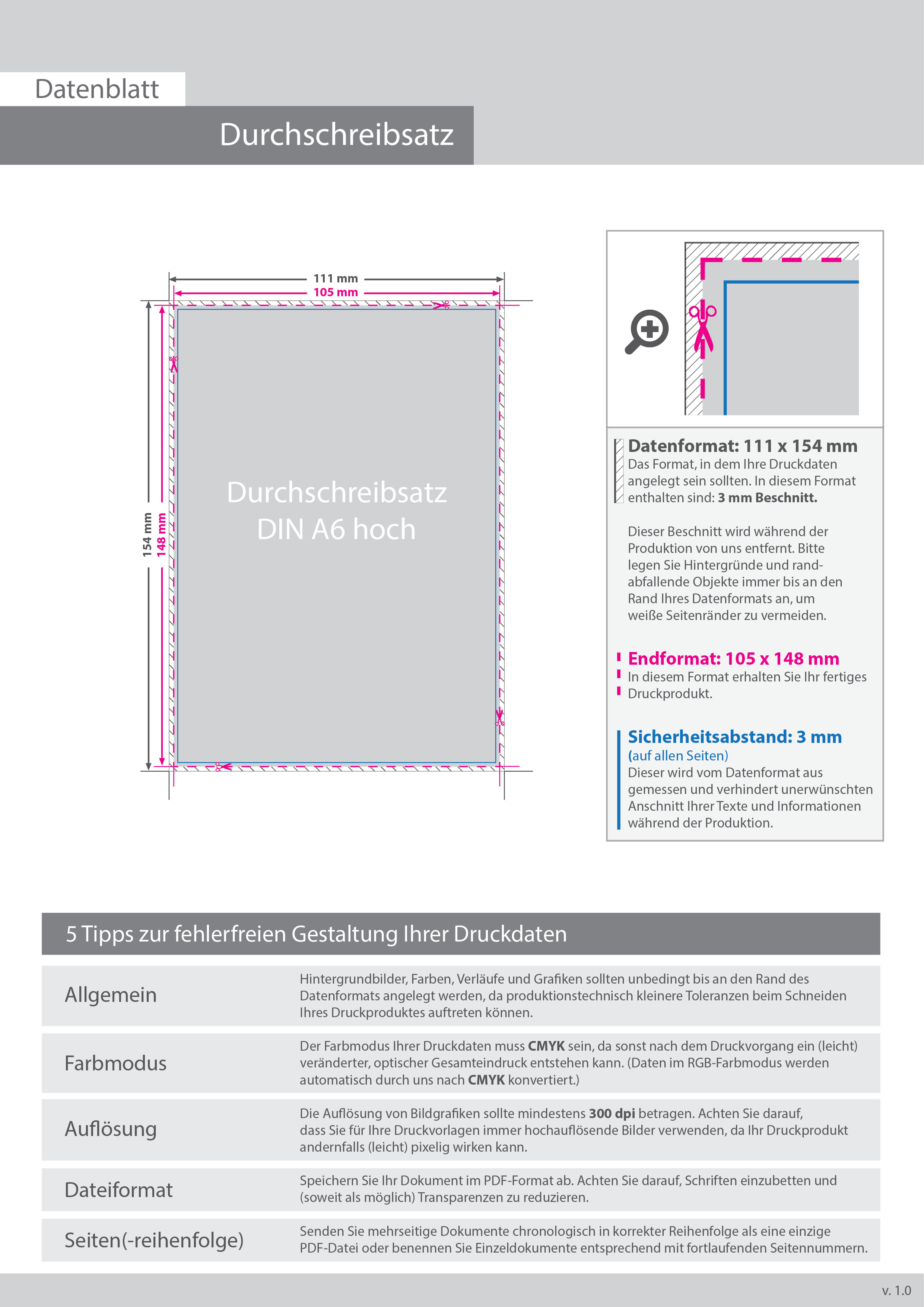 Durchschreibesätze DIN A6 hoch, 6-fach, 1/0-farbig