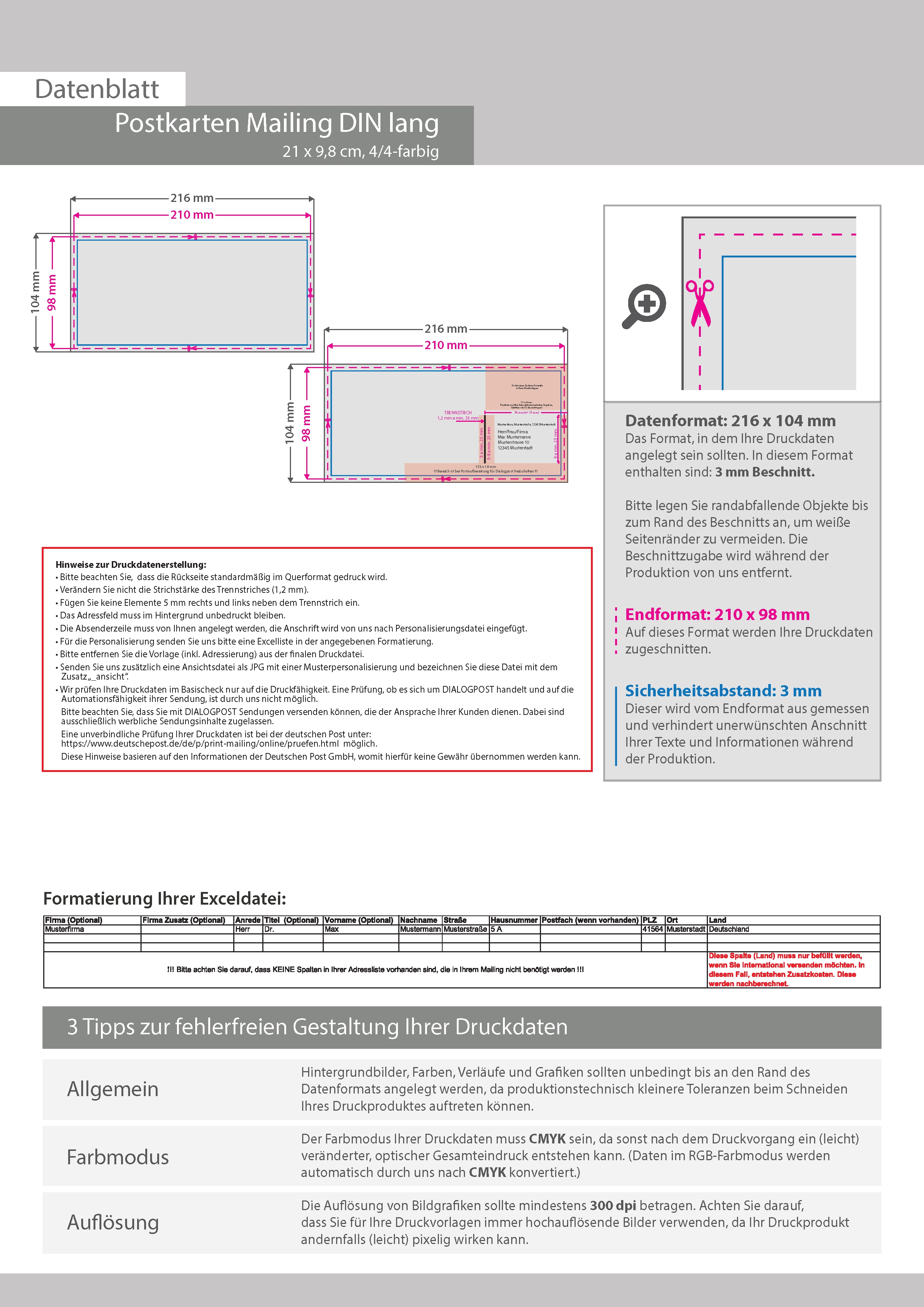 Postkarten-Mailing DIN lang Quer (21,0 cm x 9,8 cm)
