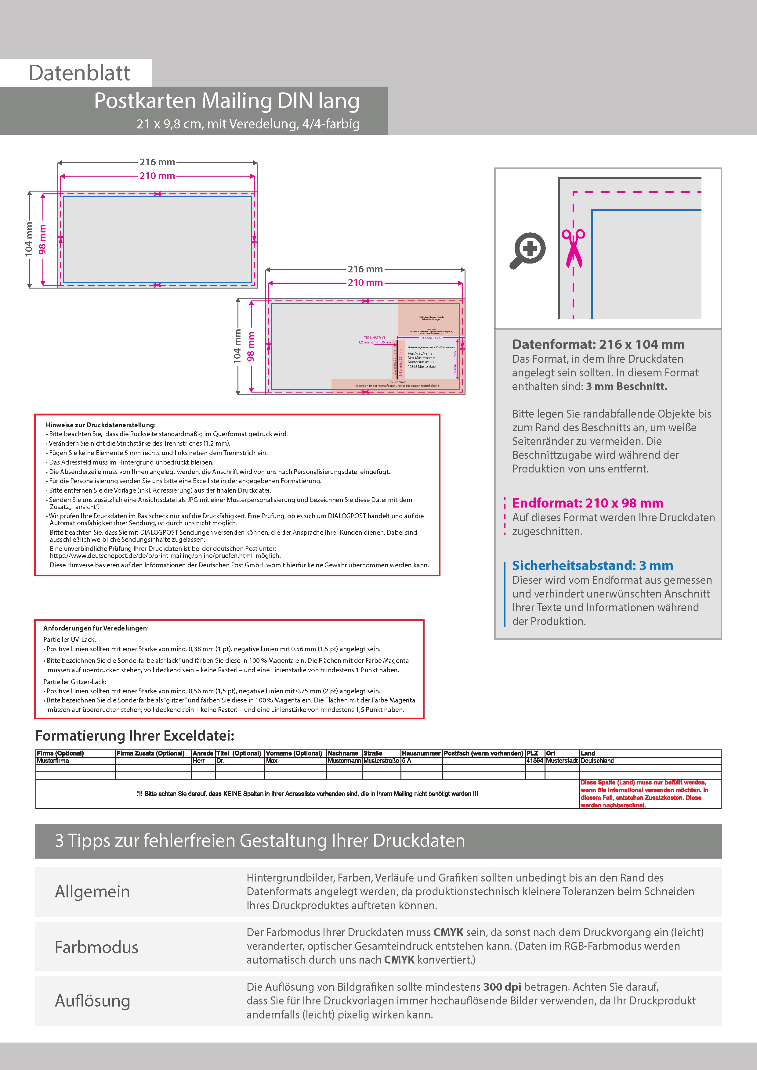 Postkarten-Mailing DIN lang Quer (21,0 cm x 9,8 cm) mit Heißfolienprägung Silber