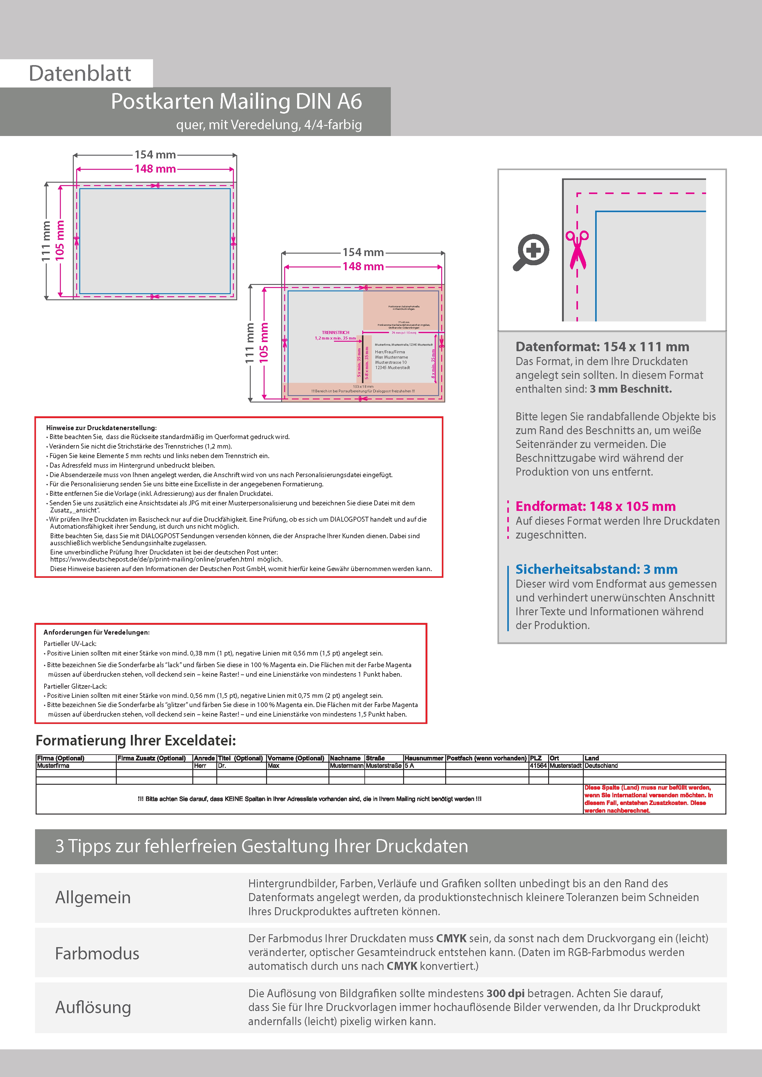 Postkarten-Mailing DIN A6 Quer (14,8 cm x 10,5 cm) mit Mattfolie kaschiert