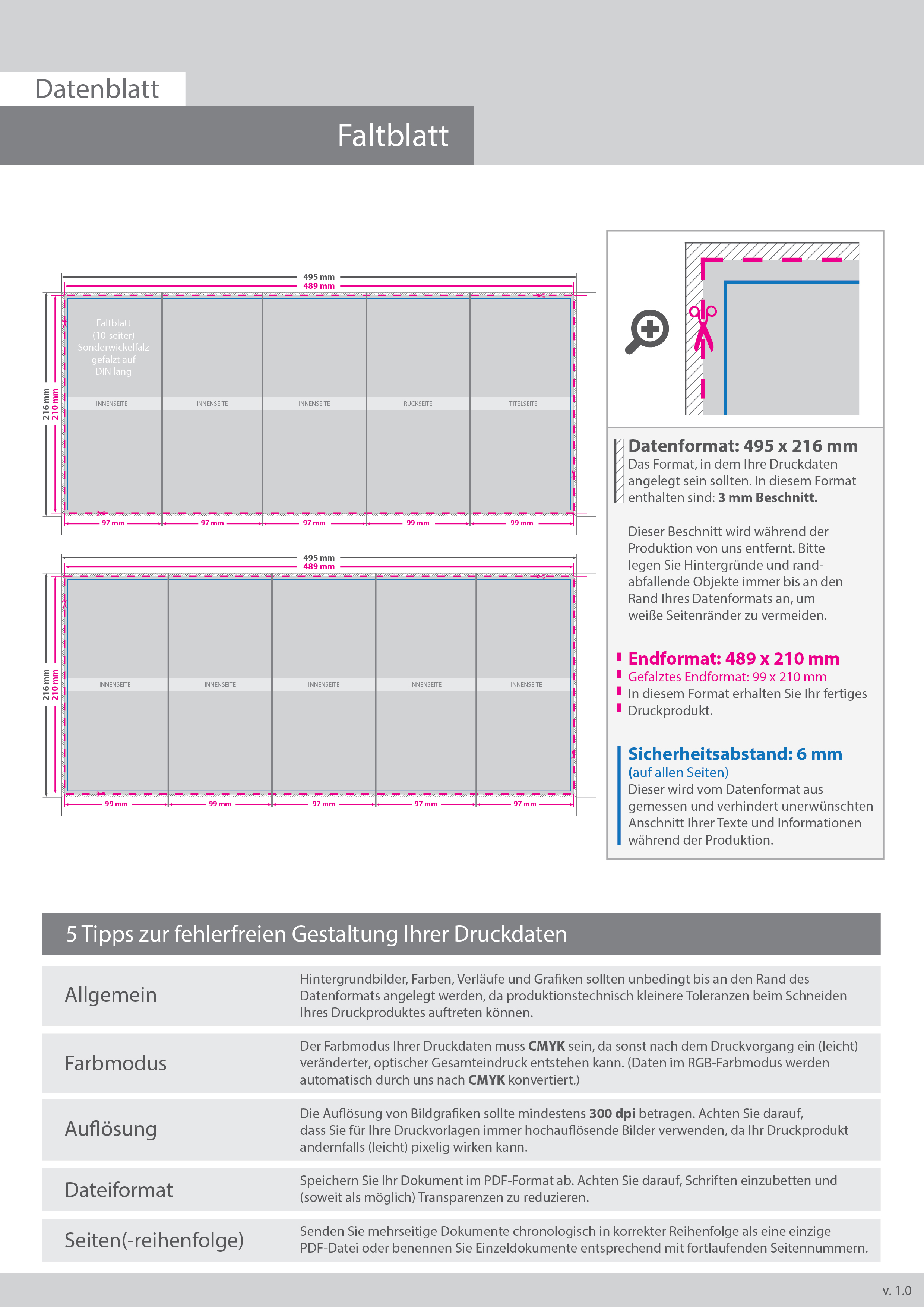 Faltblatt, gefalzt auf DIN lang, vertikaler Sonderwickelfalz, 10-seitig